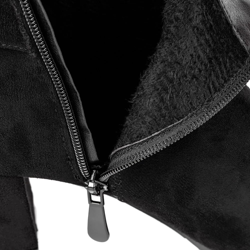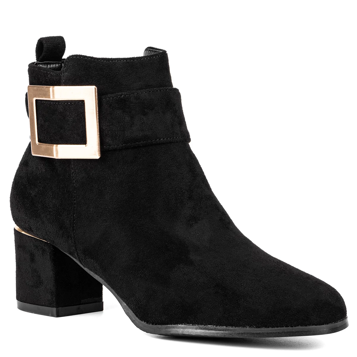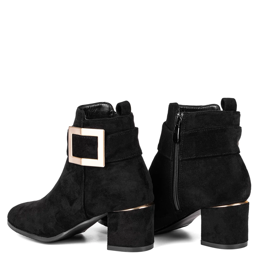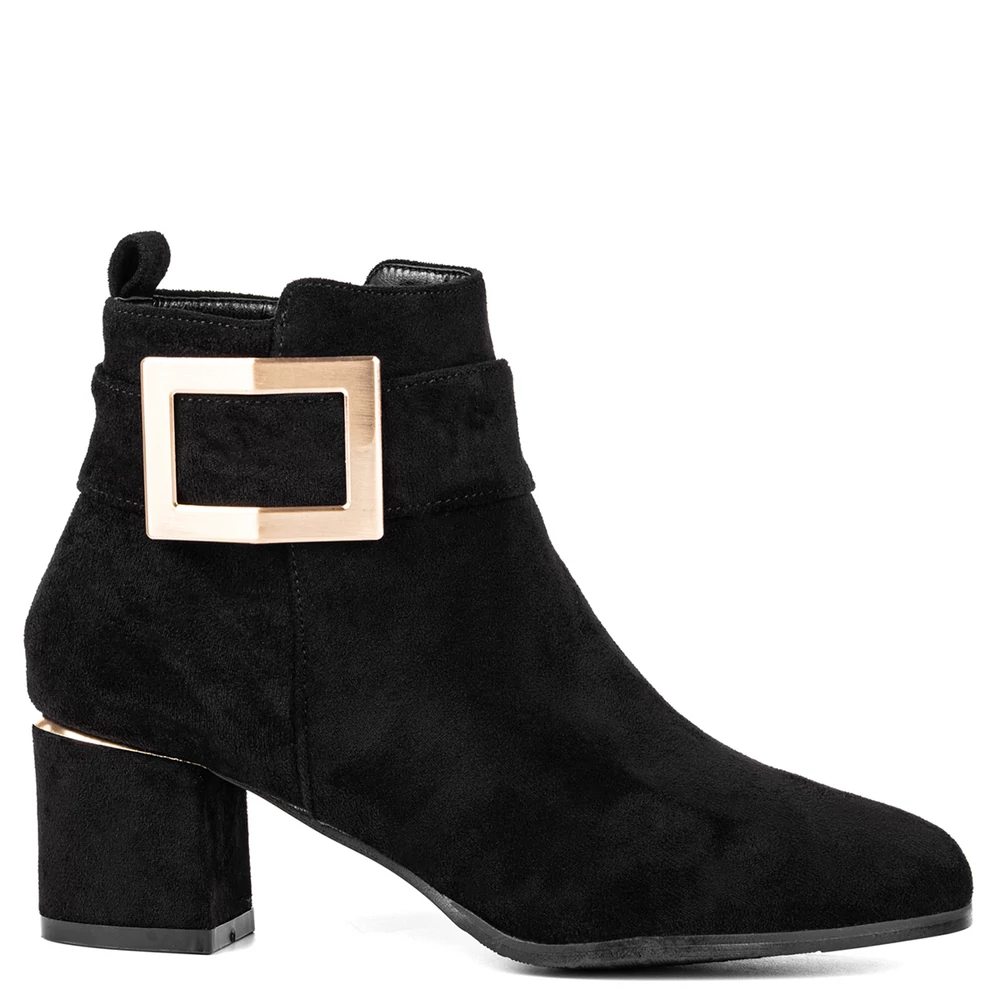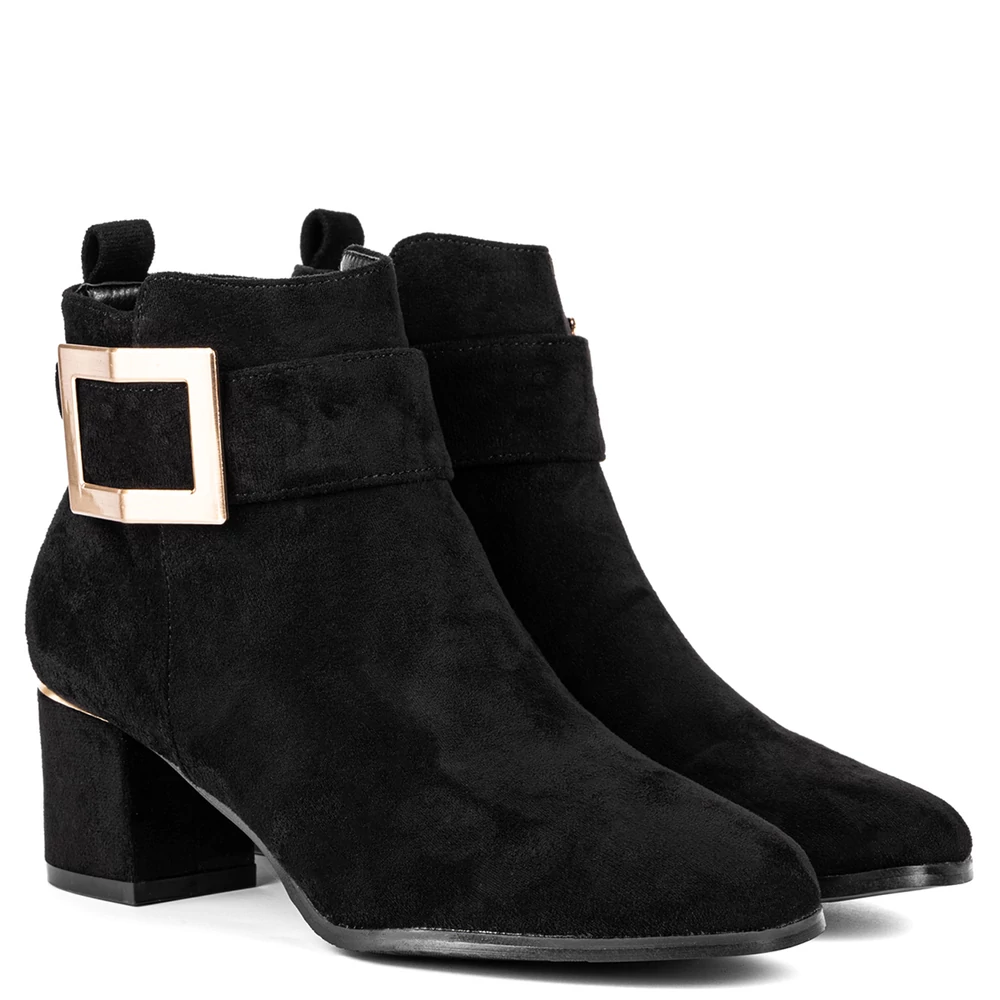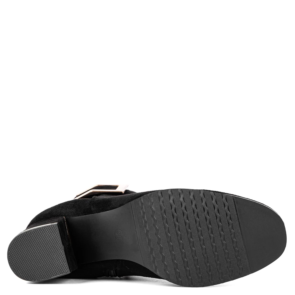 Bosido Fekete Műnubuk Bokacsizma Csipkés Szárral És Strasszköves Csattal