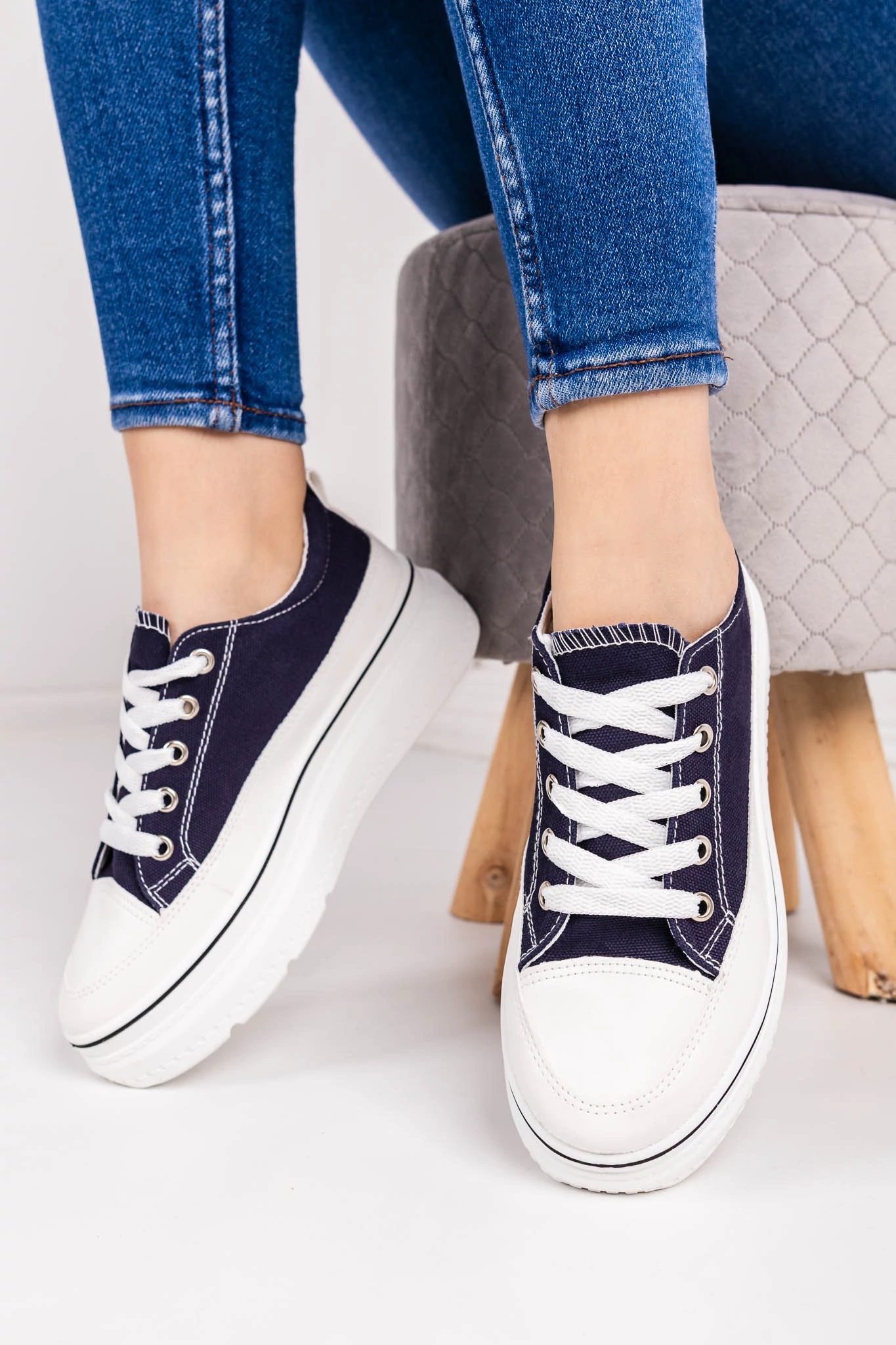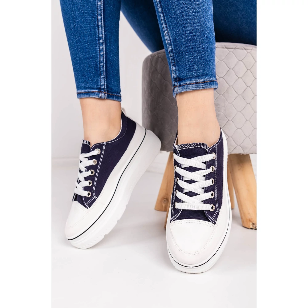 Sötétkék Vastagtalpú Vászon Női Tornacipő