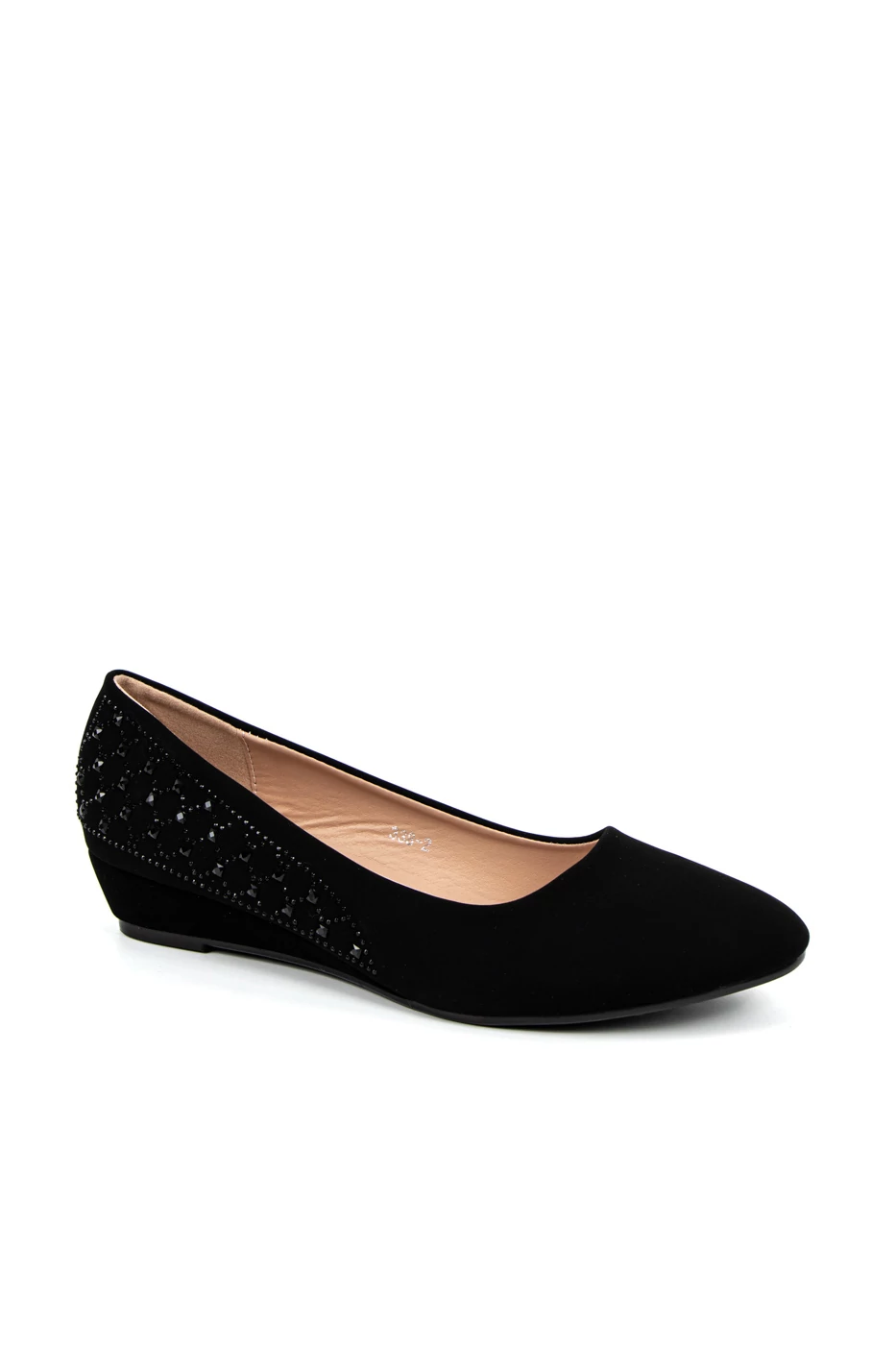 Tree Fekete Strasszkövekkel Díszített Éktalpú Alkalmi Cipő