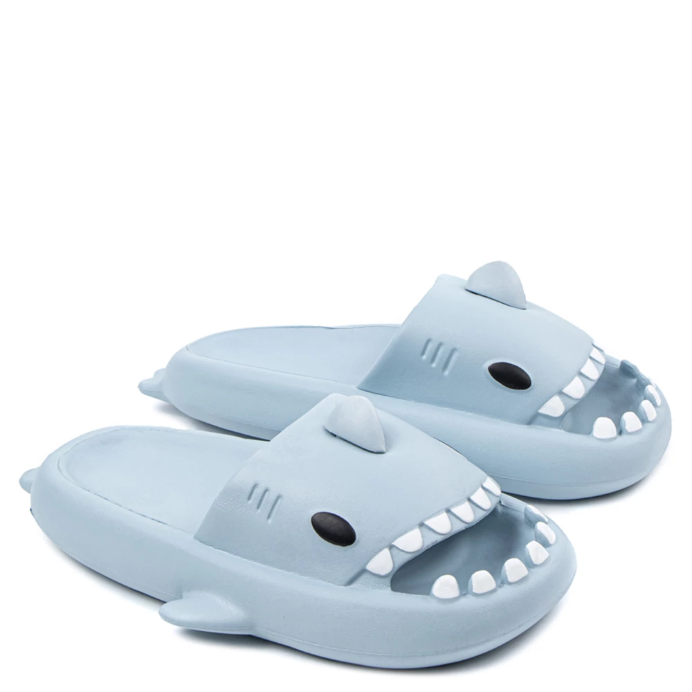 Vidám színével ezzel a cápa formájú papuccsal biztos kitűnsz a tömegből a strandon!