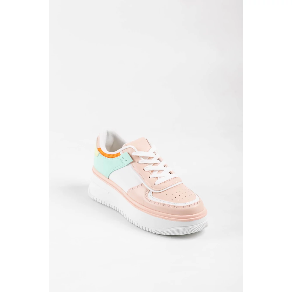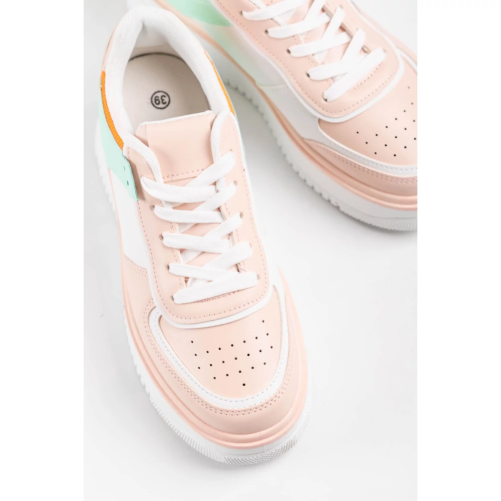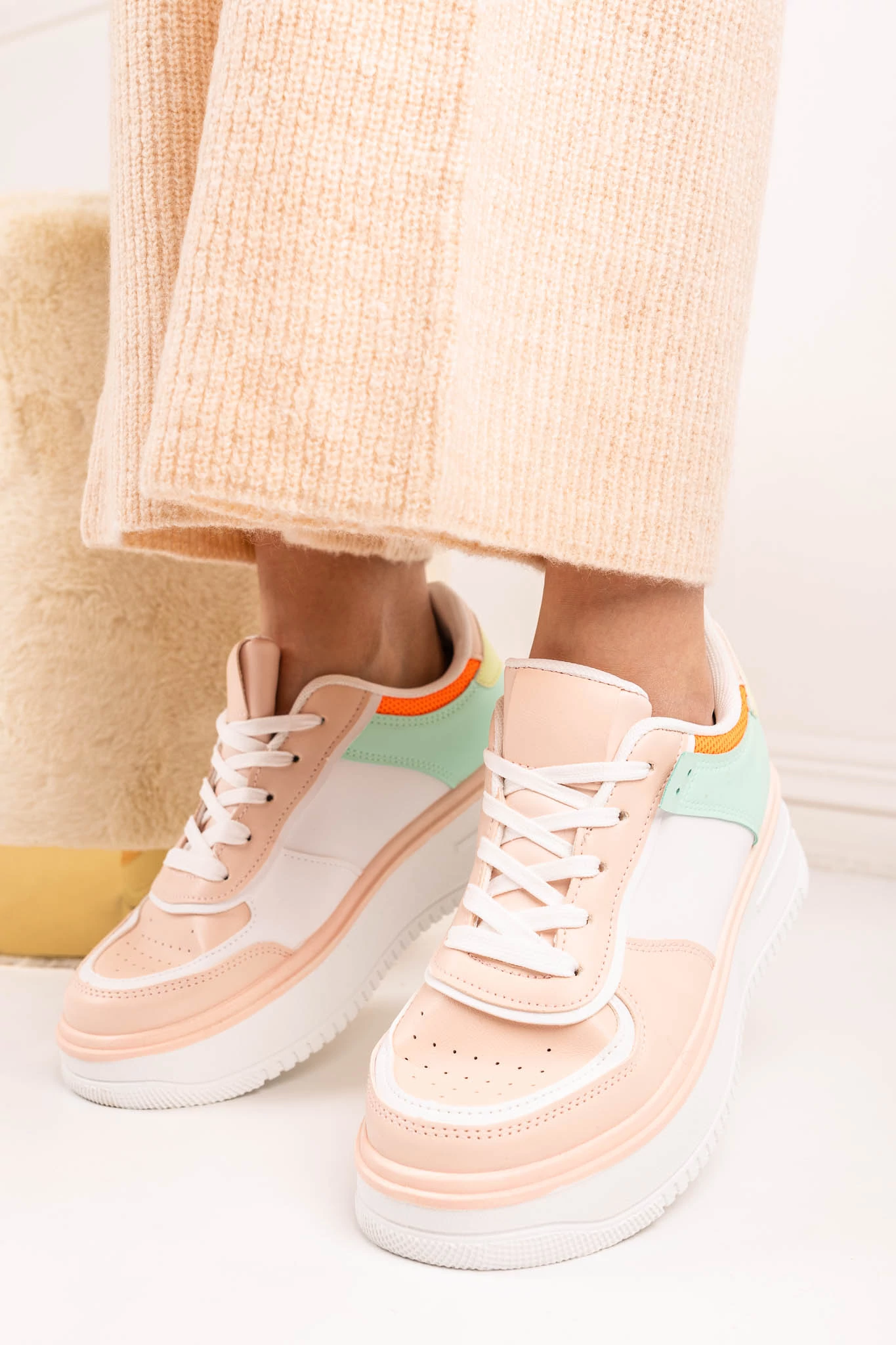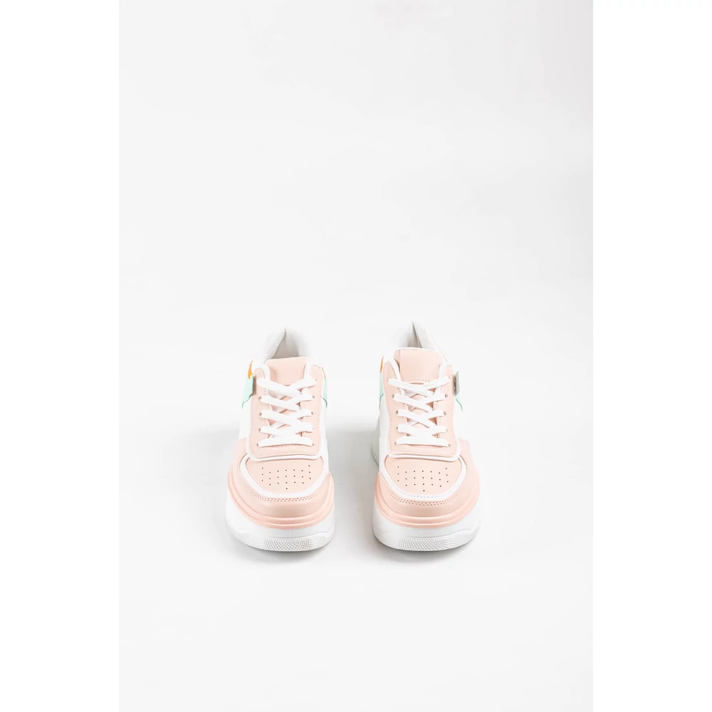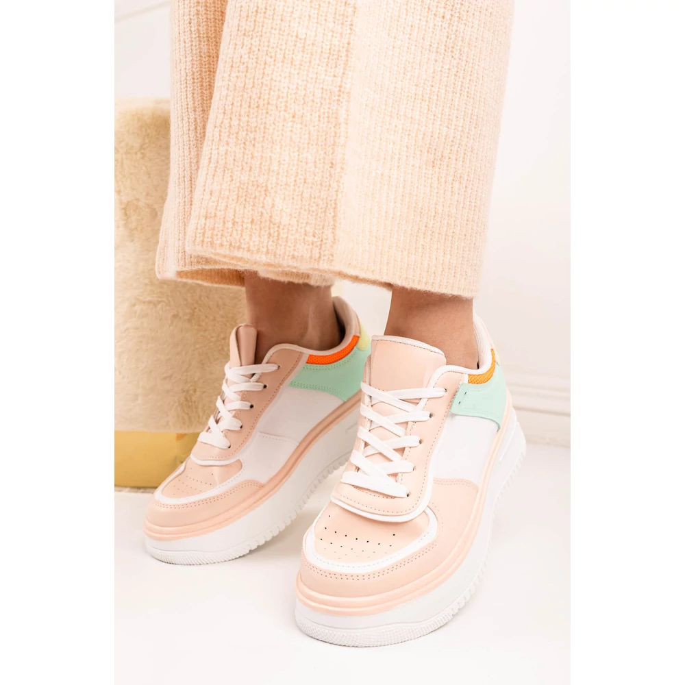 Dizájnos sportcipő, sneaker, vastag talppal. A sarkán lakkozott dísszel.