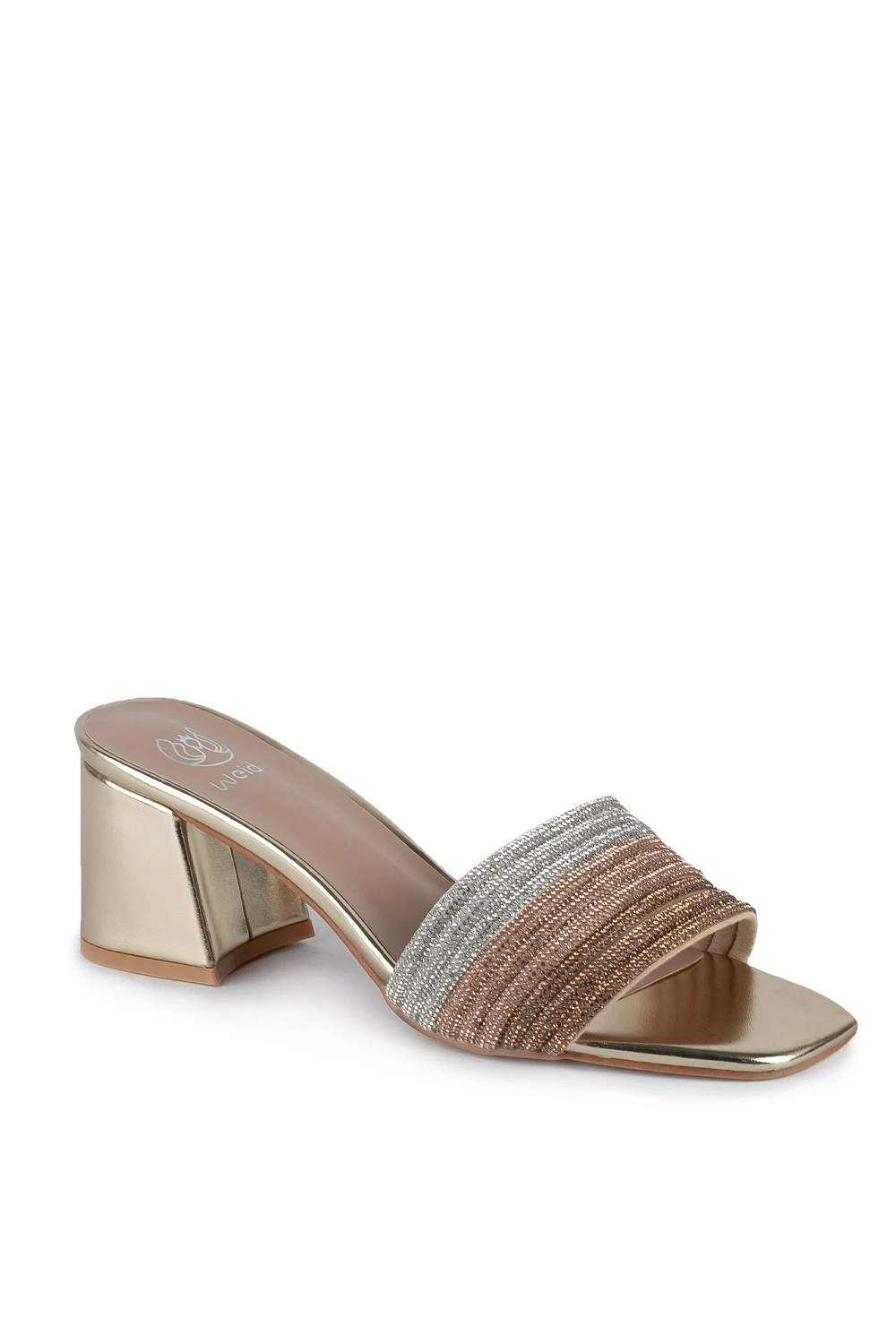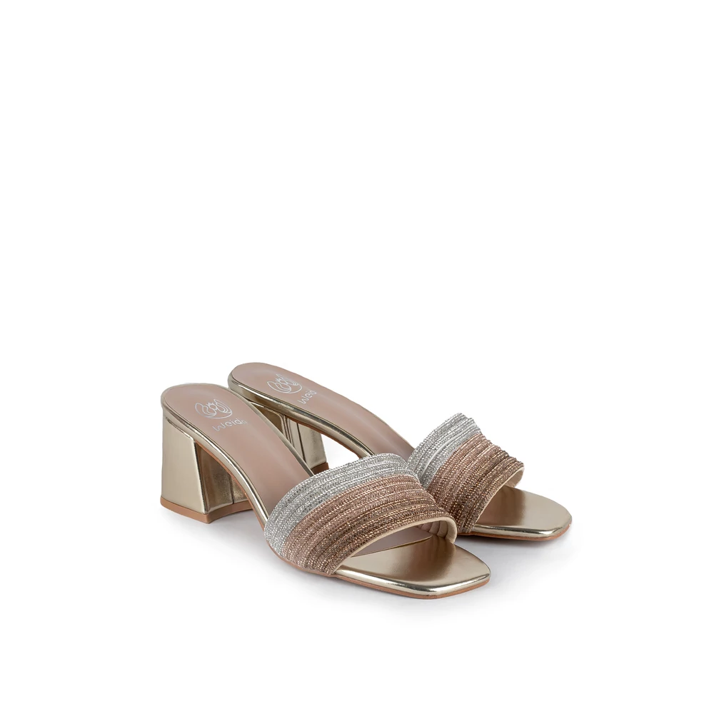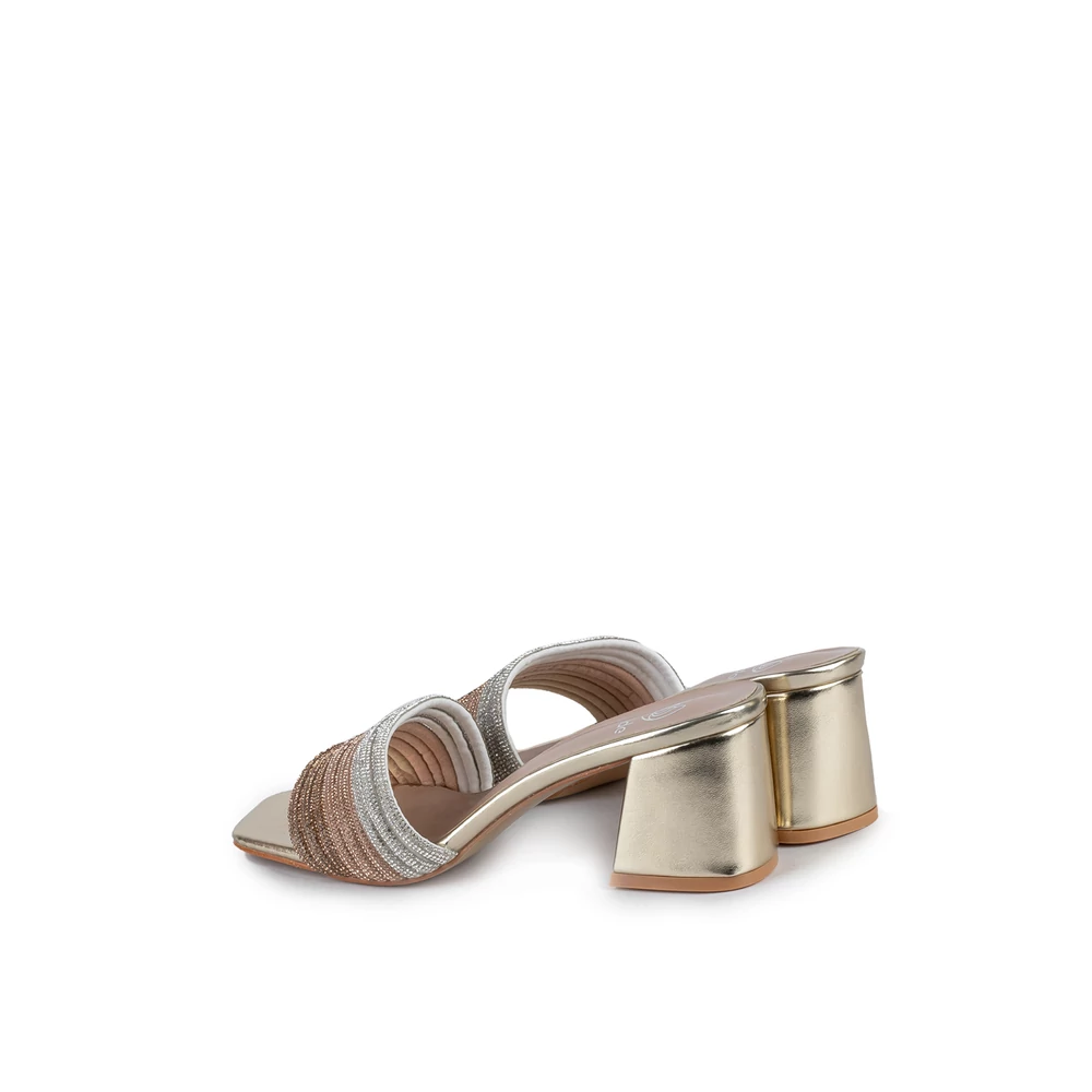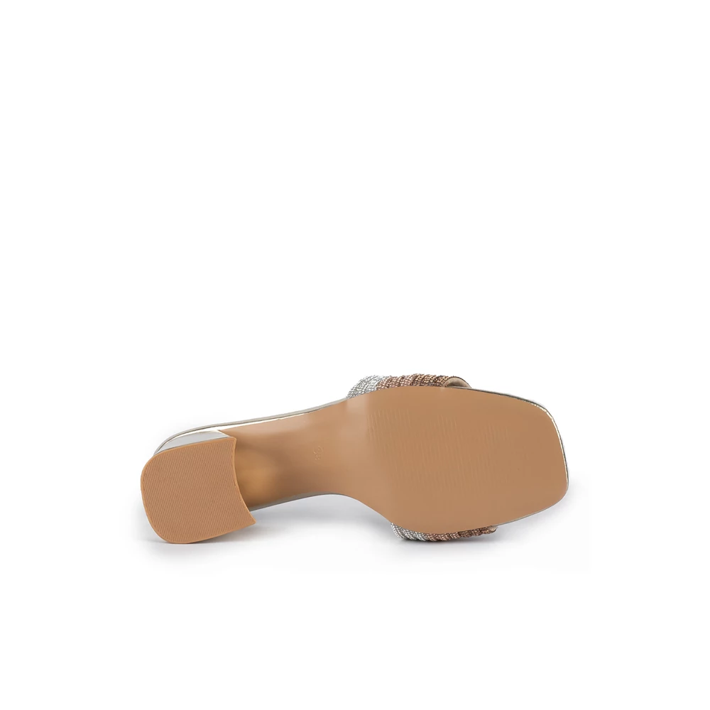 Különleges, többpántos papucs ragyogó strasszkövekkel díszítve.
