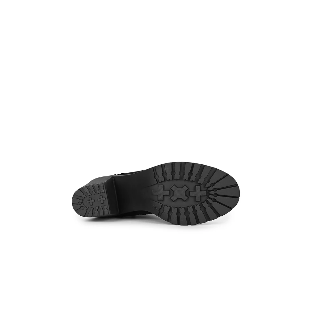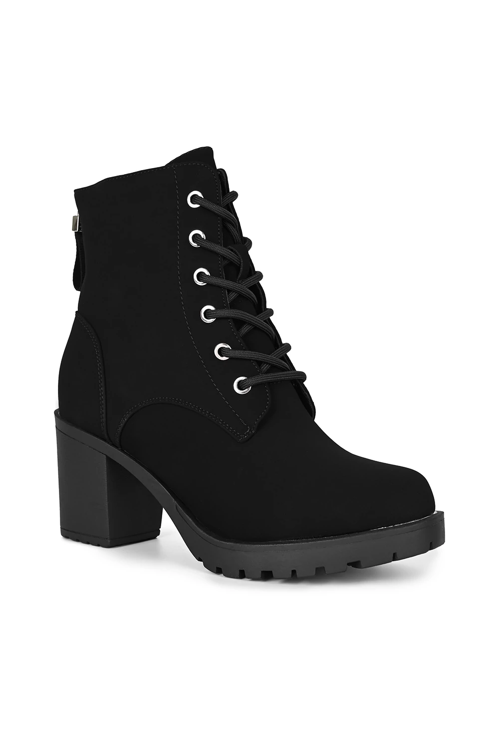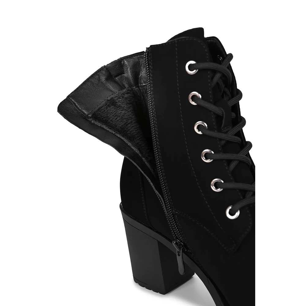 Bosido Fekete Műnubuk Bokacsizma Csipkés Szárral És Strasszköves Csattal