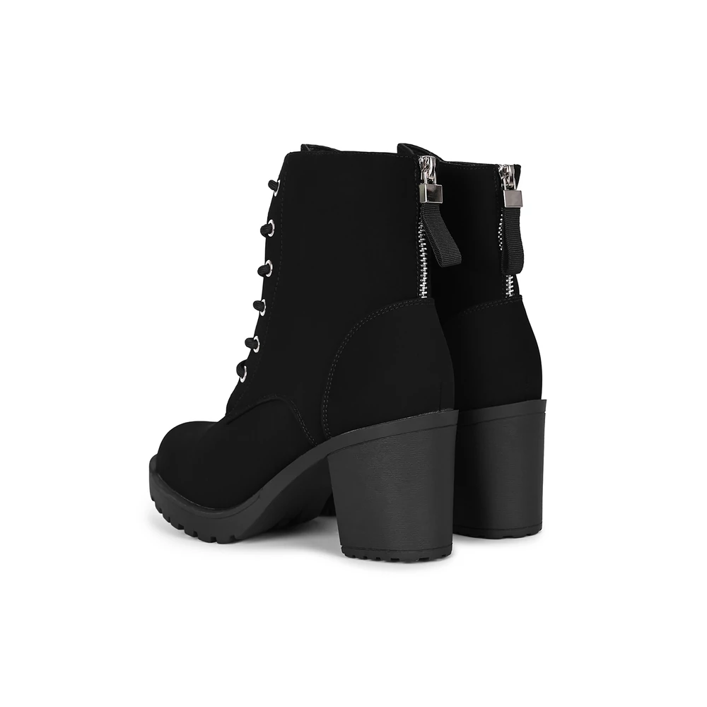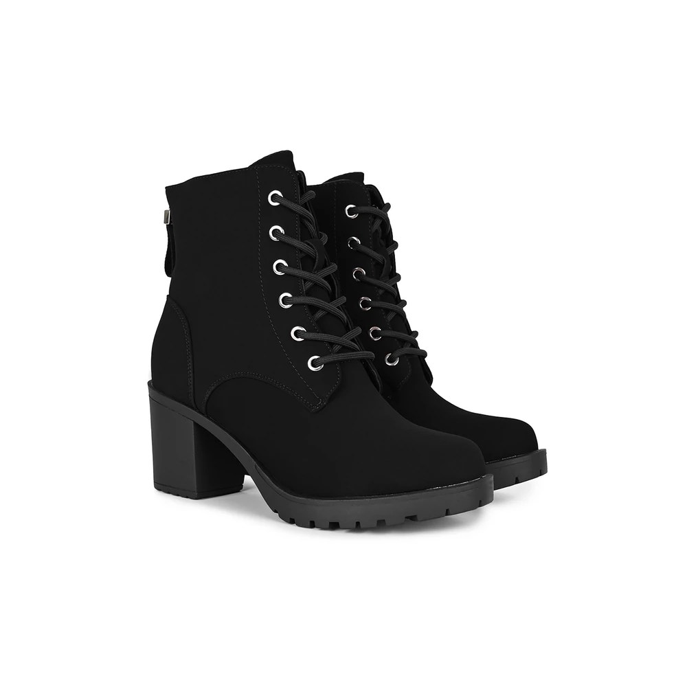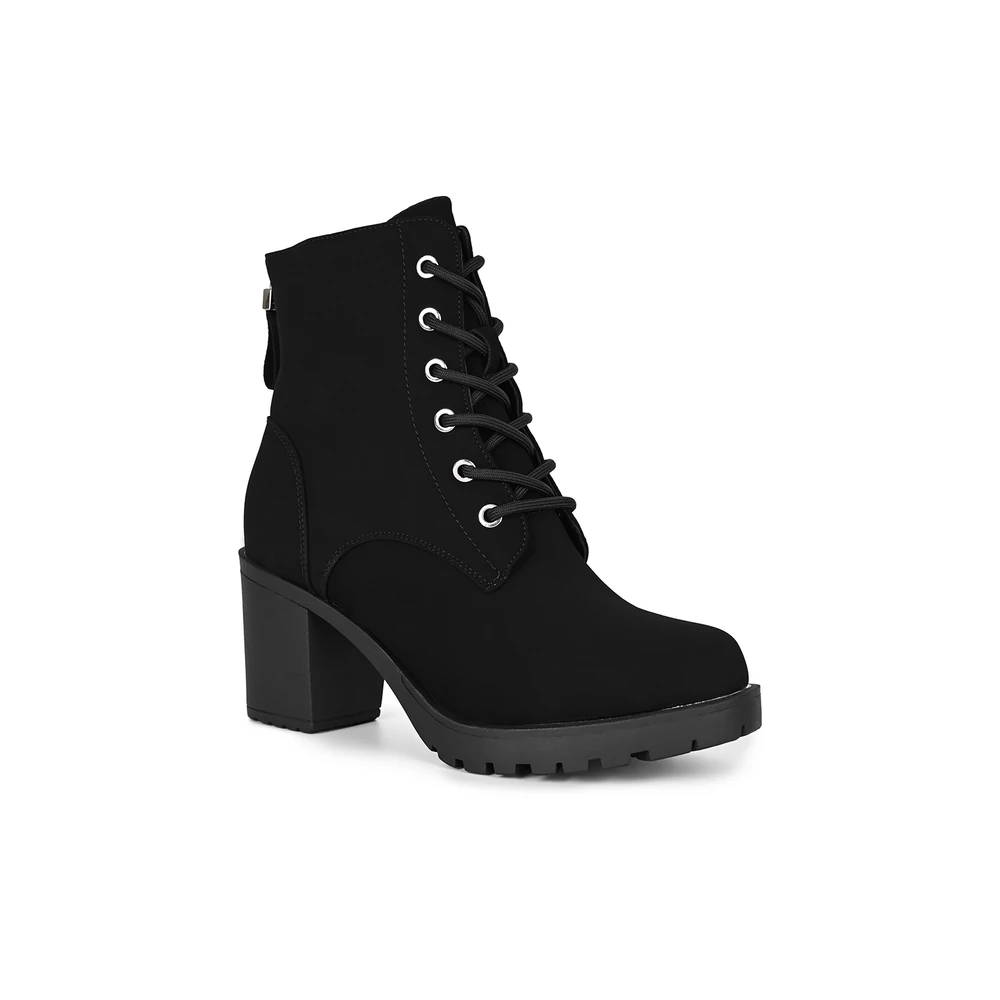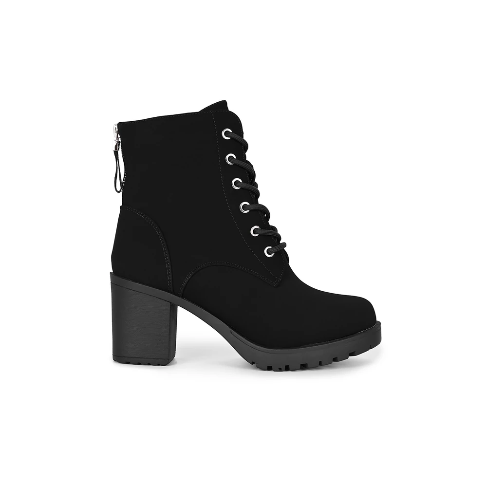 Bosido Fekete Műnubuk Bokacsizma Csipkés Szárral És Strasszköves Csattal