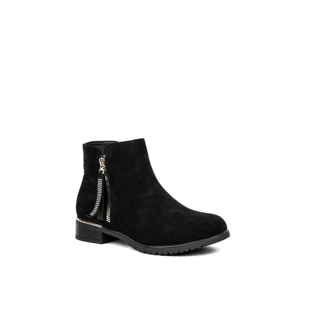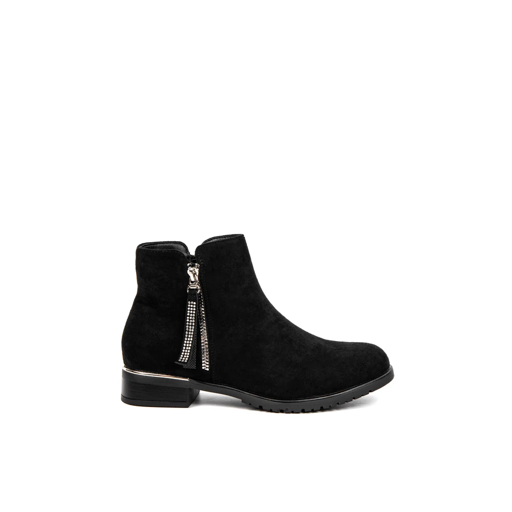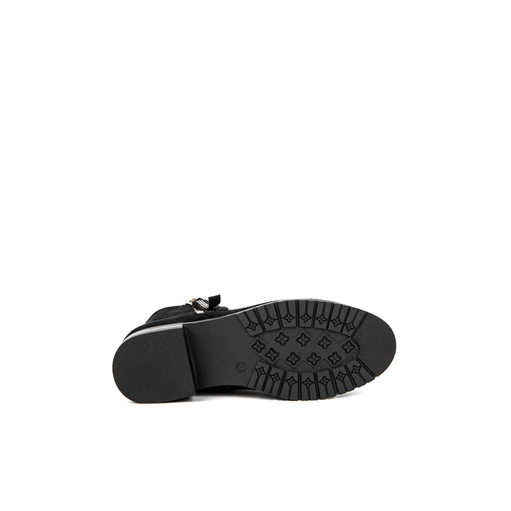 Bosido Fekete Műnubuk Bokacsizma Csipkés Szárral És Strasszköves Csattal