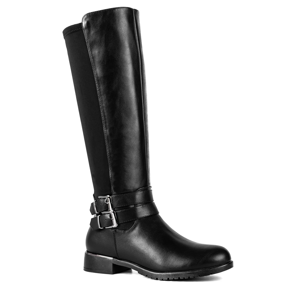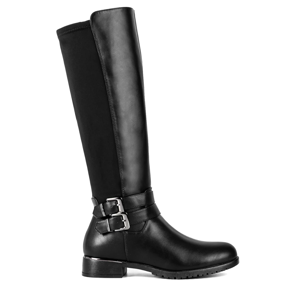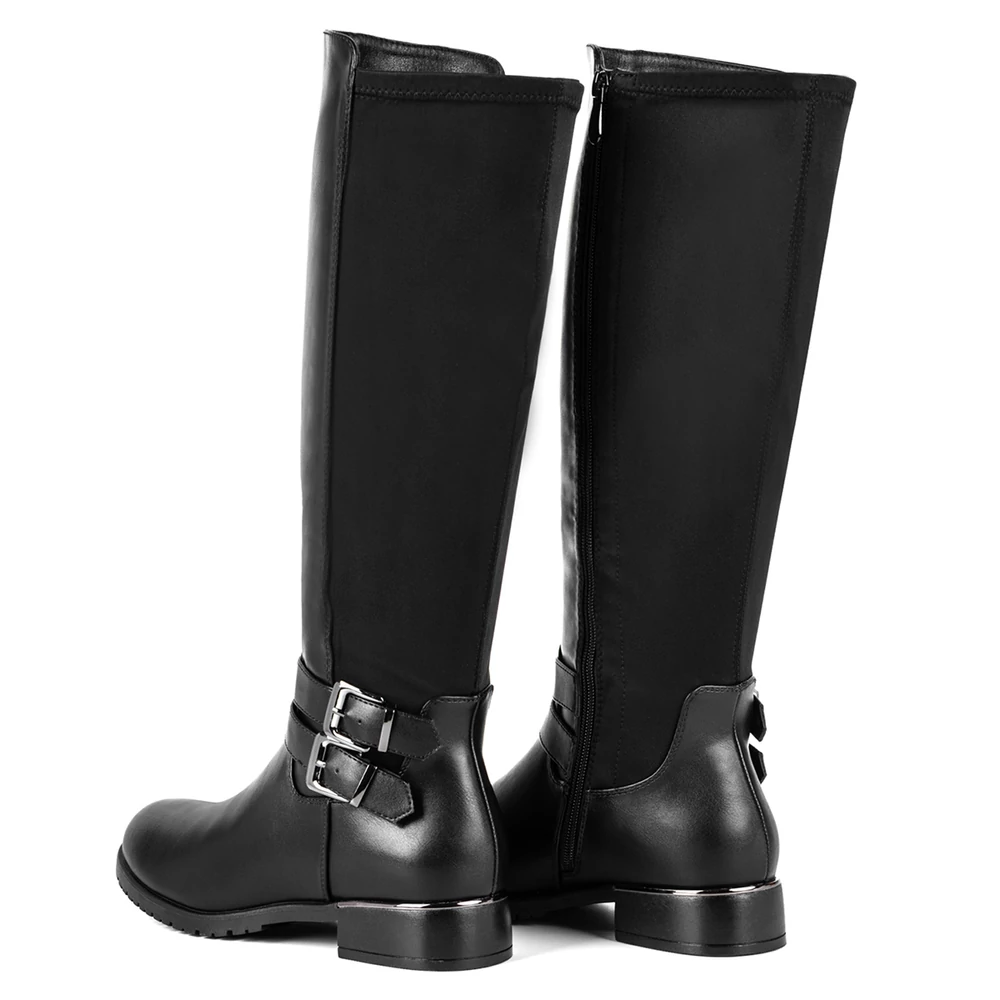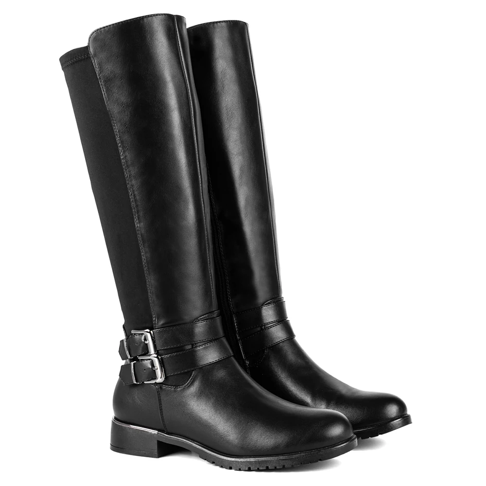Bosido Fekete Magasszárú Csizma Gumis Szárral