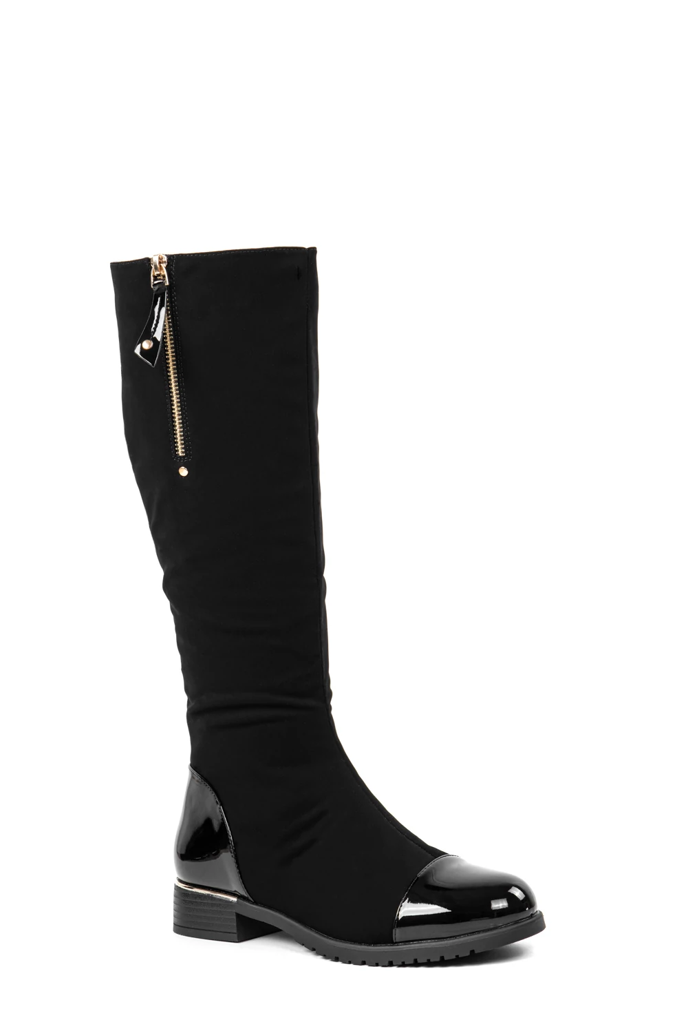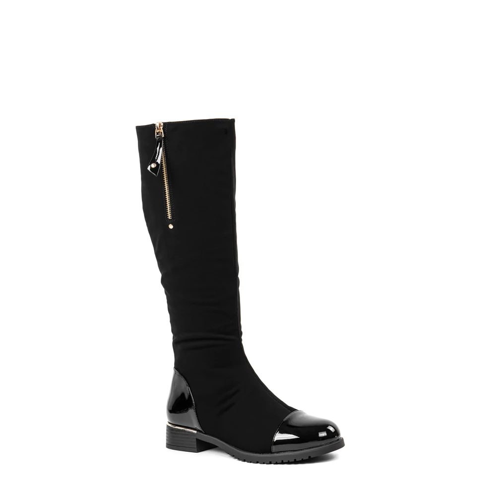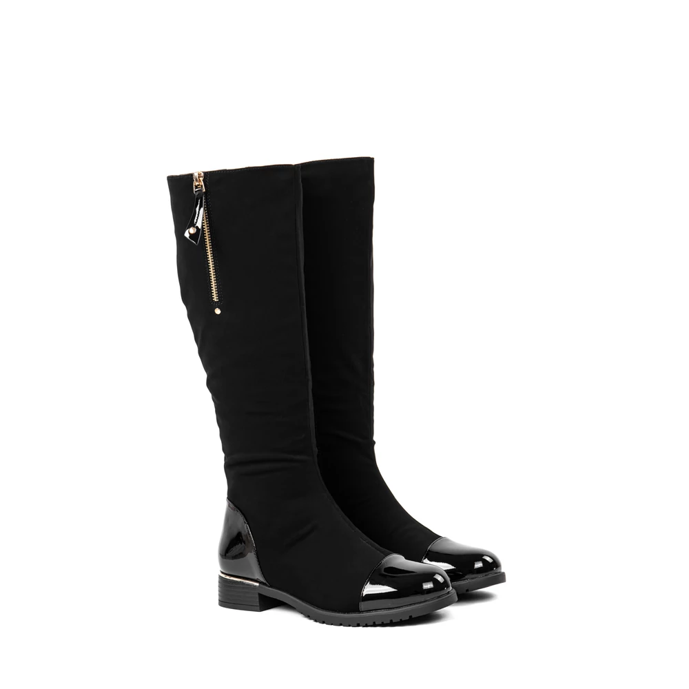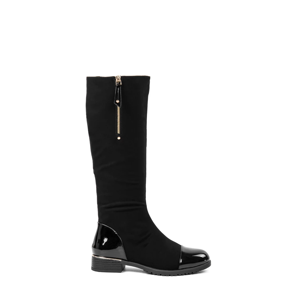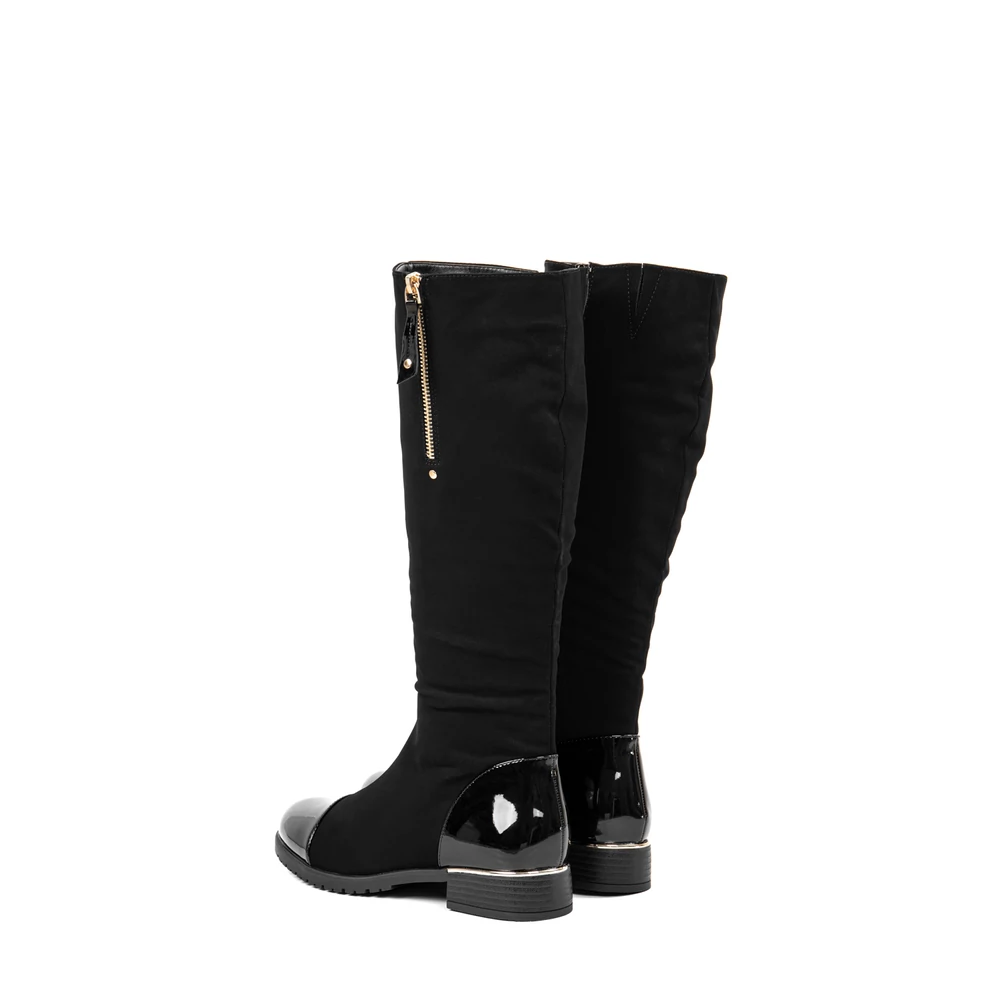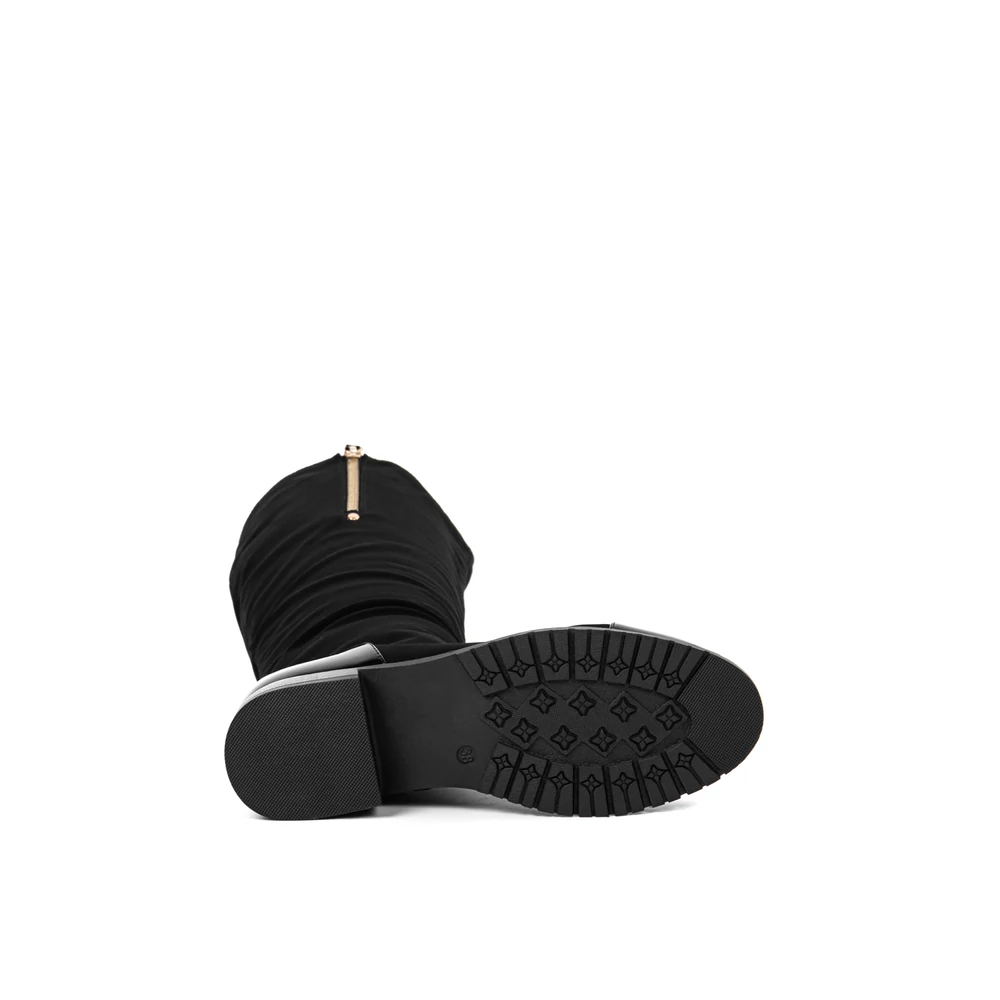 Bosido Fekete Magasszárú Csizma Gumis Szárral