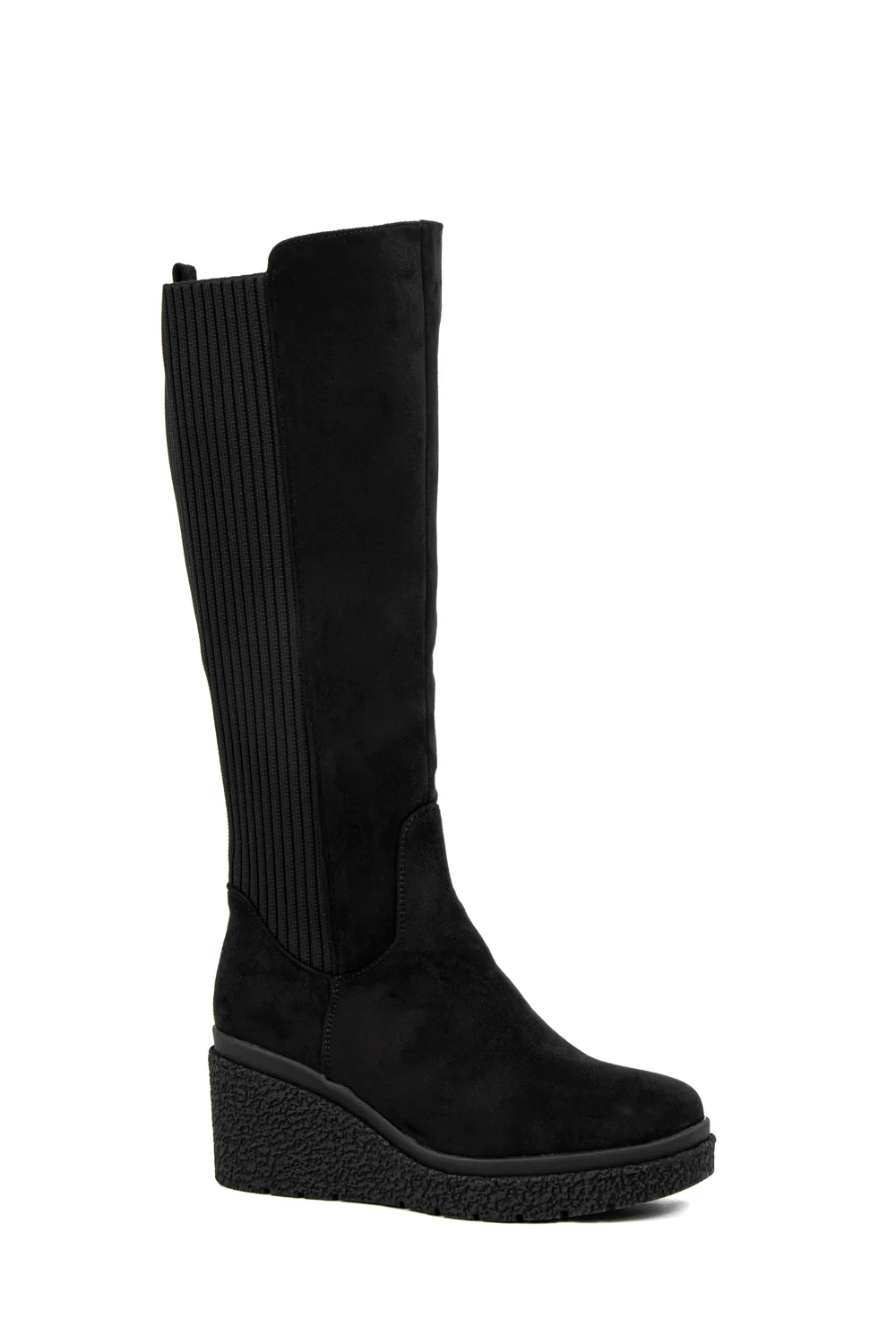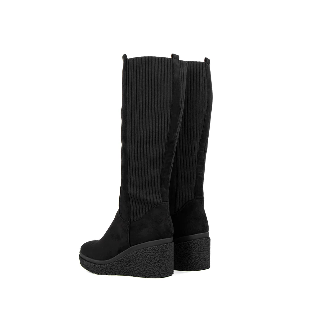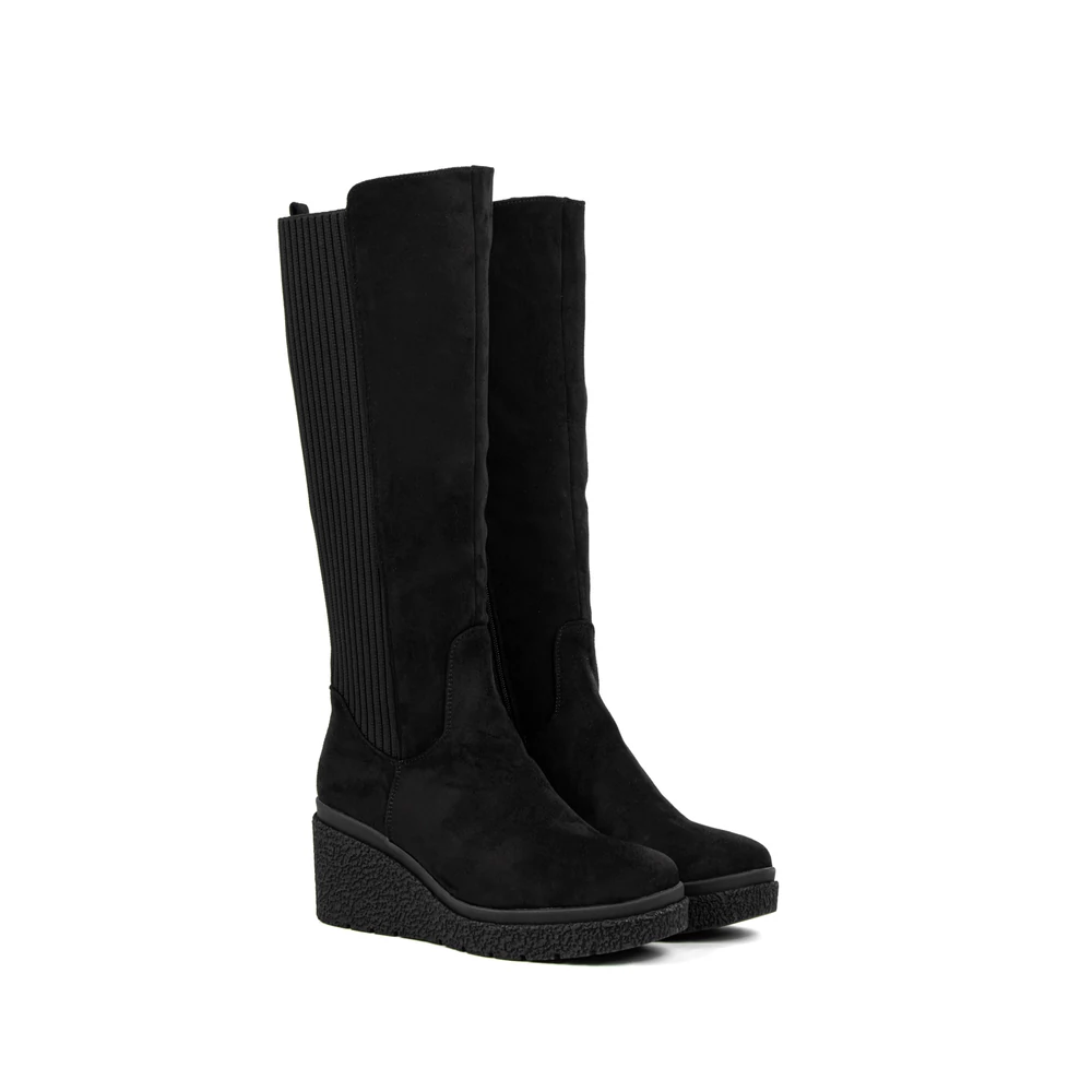 Bosido Fekete Magasszárú Csizma Gumis Szárral