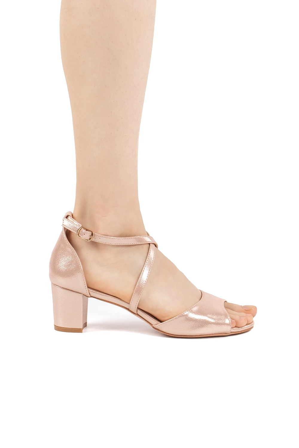 Letisztult, keresztpántos szandál blokksarokkal az elegáns és modern stílus hatásáért.