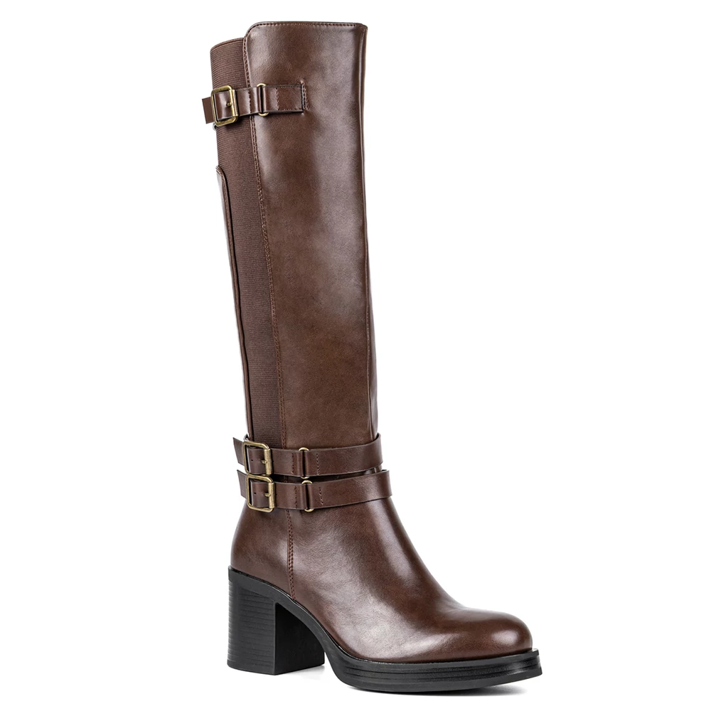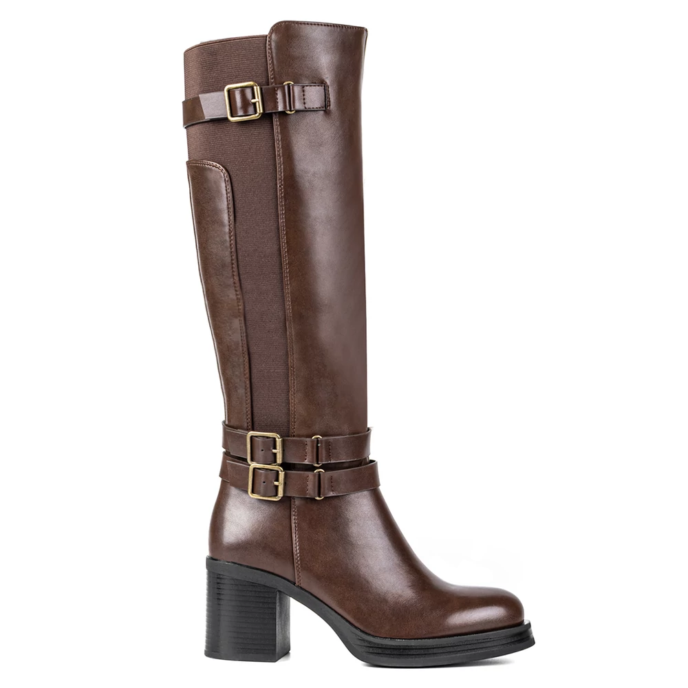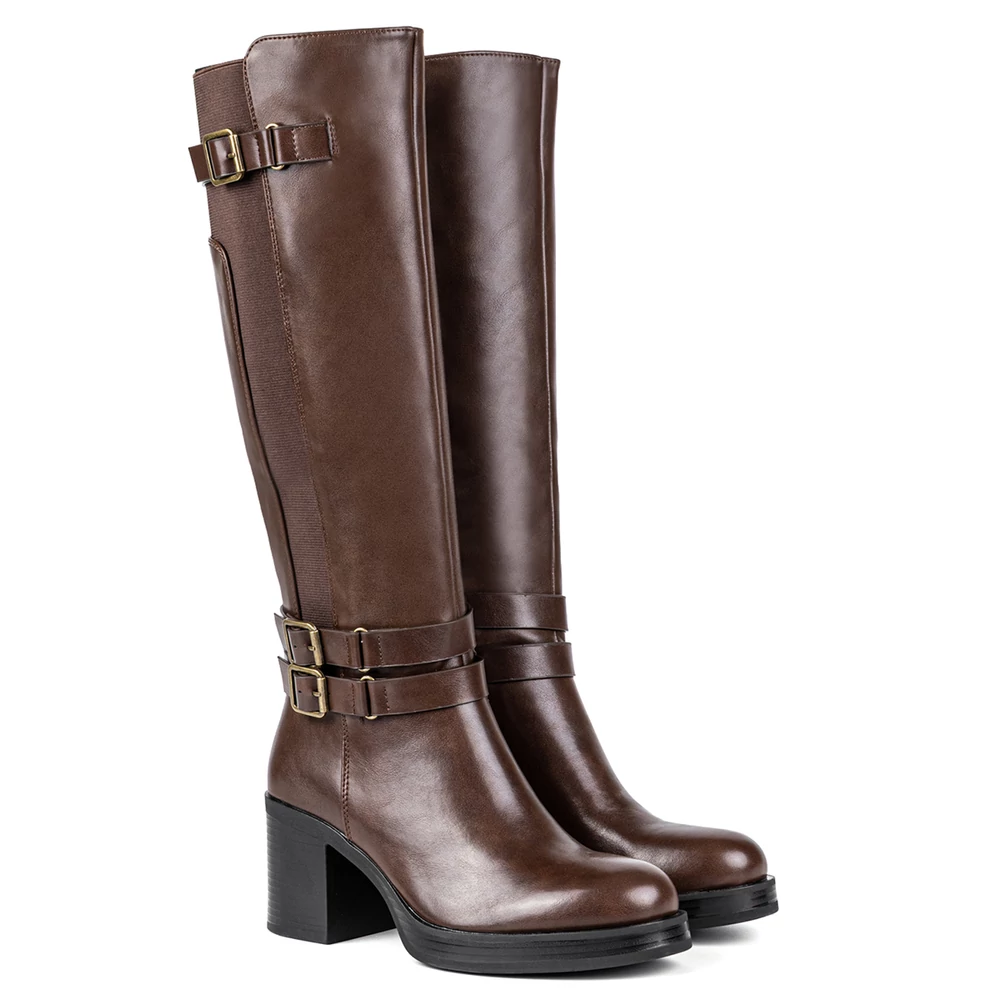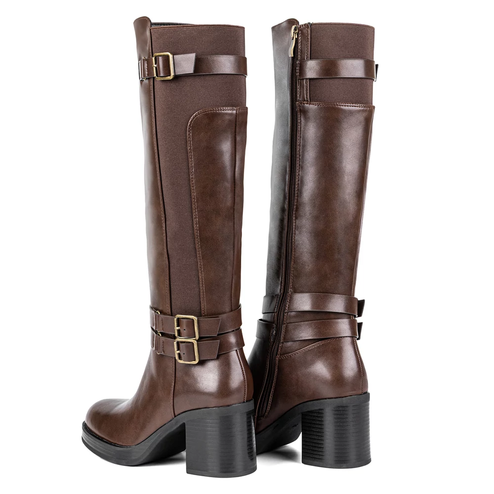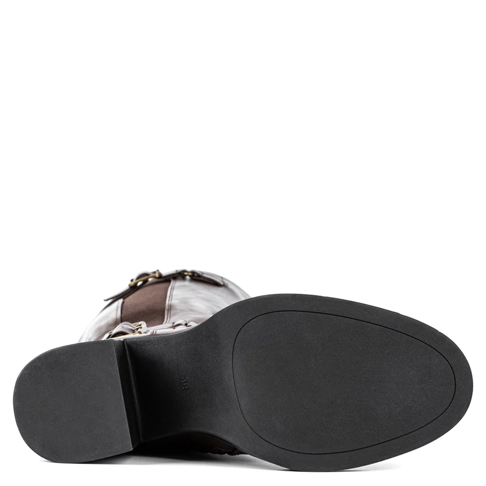 Elegáns, hosszú szárú fazon, amelyet dekoratív csatok emelnek ki. Stabil, vastag sarokkal és csúszásgátló talppal készült, így kényelmes választás mindennapi viselethez. Oldalsó cipzárja a praktikus felvételt segíti, meleg bélése pedig gondoskodik a komfortérzetről a hűvösebb napokon is.
