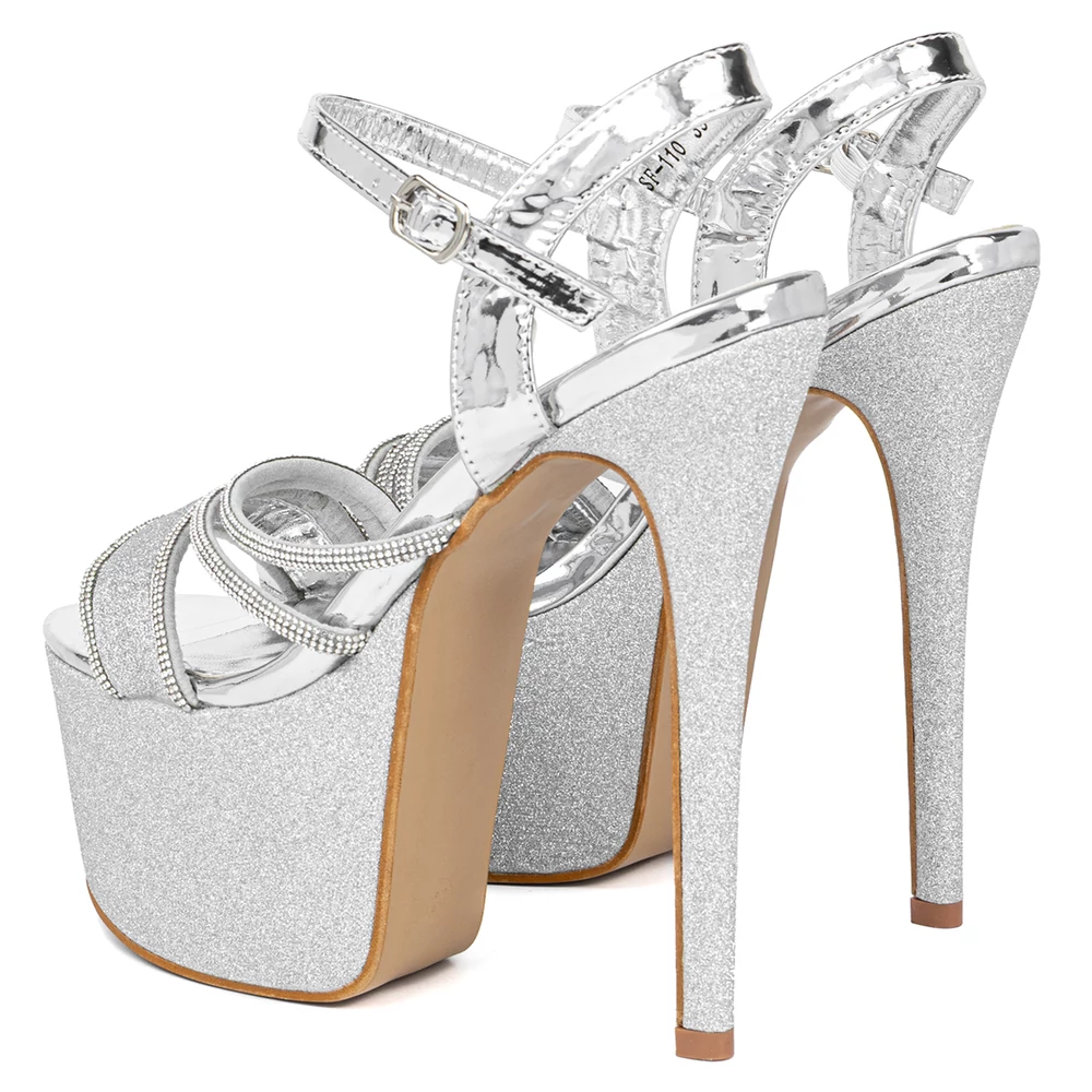 Ezüst Színű Platformos Tűsarkú Szandál