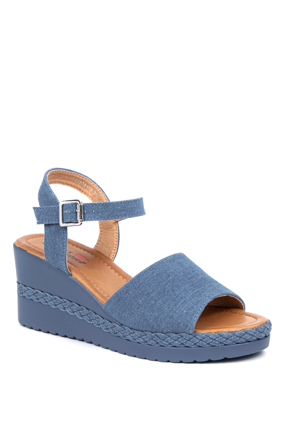 Trendi, nyári platformos szandál, amit bokapántos kialakítása tesz egyedivé.