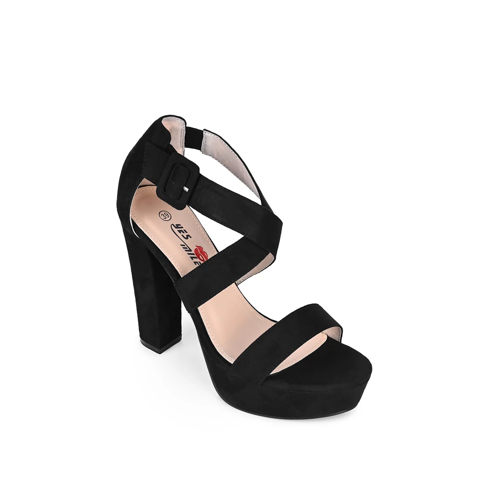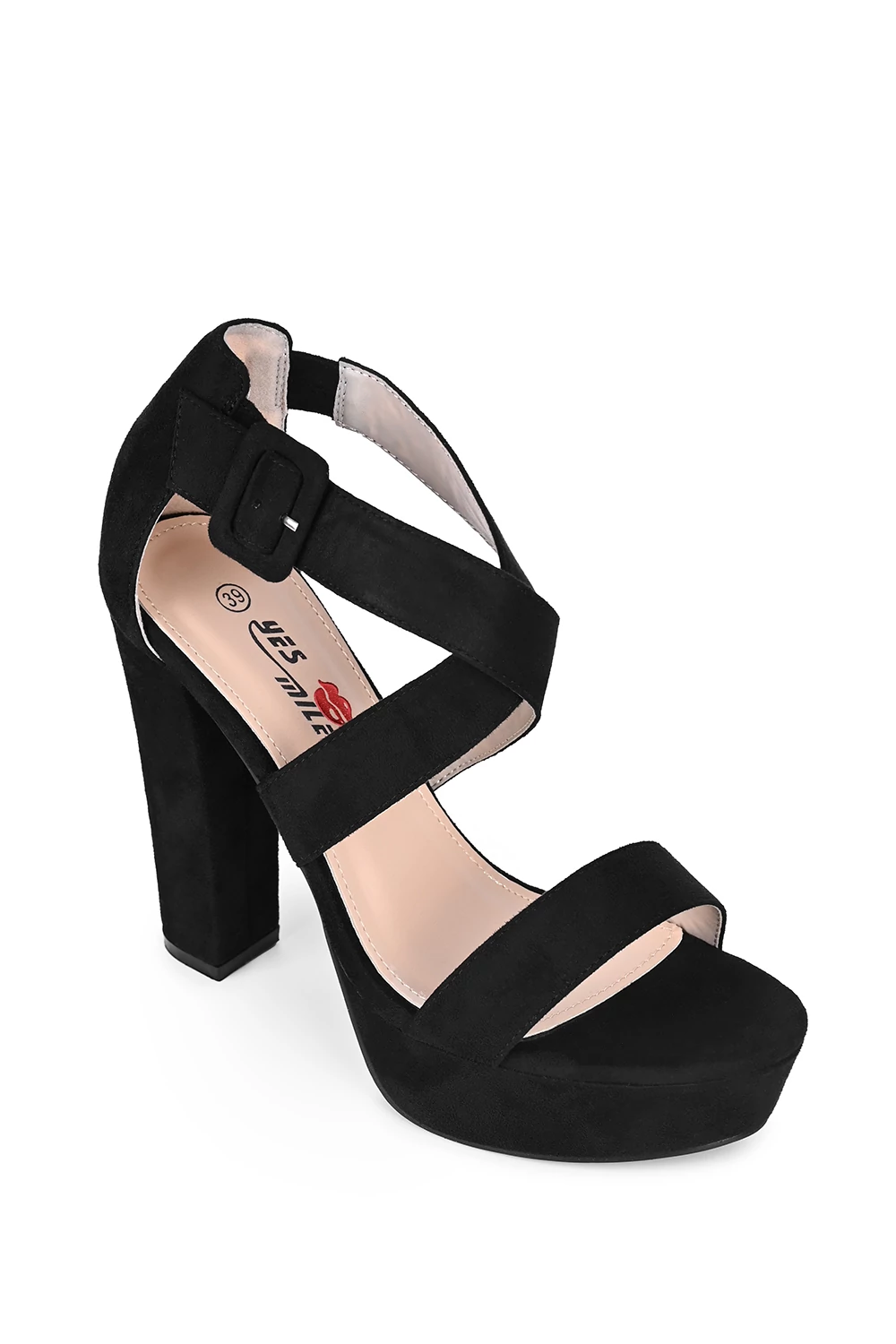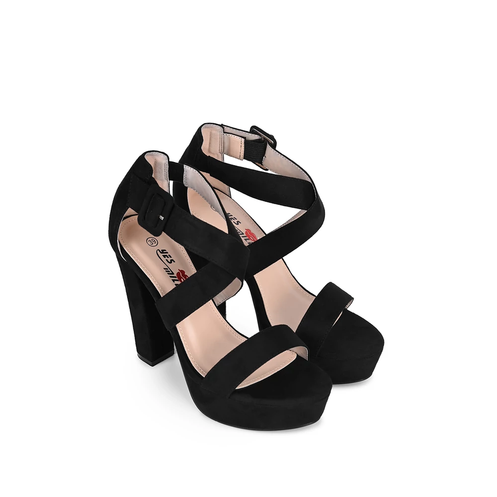 Fekete Magassarkú Művelúr Megkötős Női Szandál