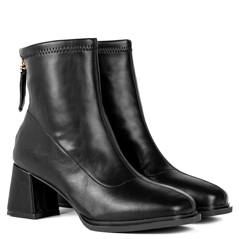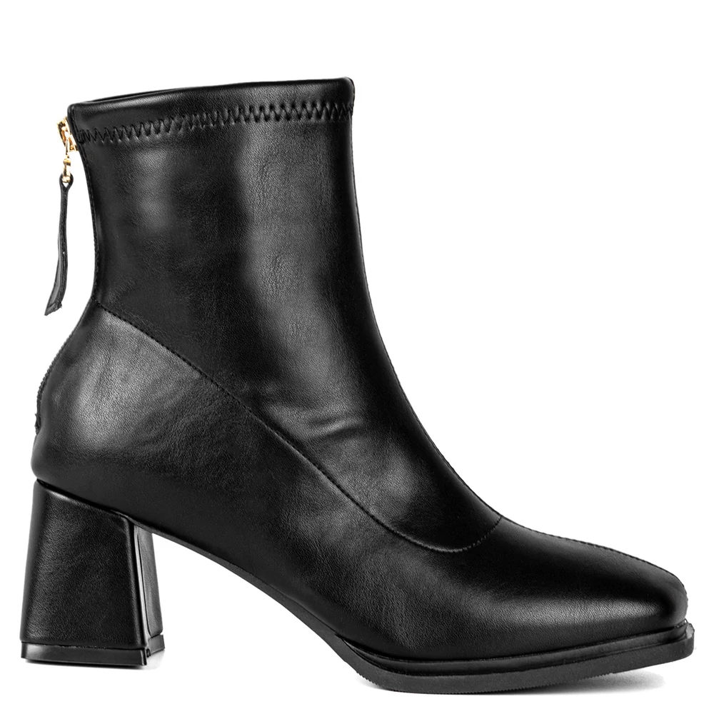 Ez az elegáns bokacsizma tökéletes választás a hűvösebb napokra. A műbőrből készült külső anyag puha tapintású és stílusos megjelenést biztosít. A bokacsizma hátulján található cipzár nemcsak a modern dizájn része, hanem praktikus is, hiszen segítségével könnyedén fel- és levehető a csizma. A enyhén bélelt belső gondoskodik róla, hogy lábaid mindig melegen maradjanak, így a kényelemről sem kell lemondanod.