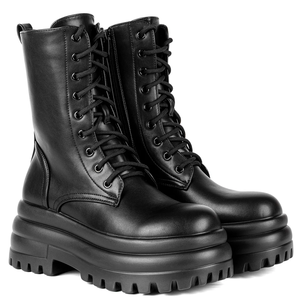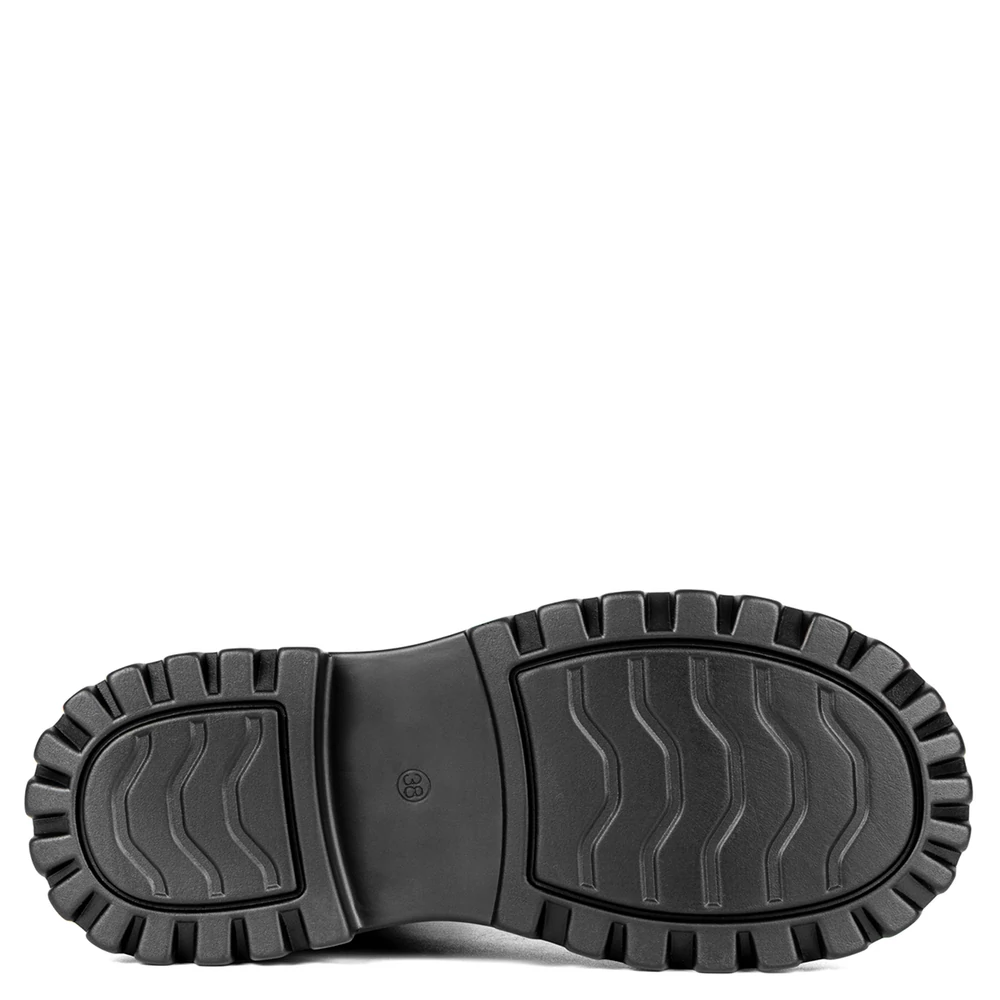 Masszív, mégis letisztult megjelenésű női bakancs, amely kiváló választás a hűvösebb napokra. Kényelmesen párnázott belső bélése melegen tart, míg a vastag, bordázott talp gondoskodik a biztos lépésekről. A fűzős fazon jól igazodik a láb formájához, az oldalsó cipzár pedig gyors fel- és levételt biztosít. Strapabíró anyaga és modern vonalvezetése teszi ezt a modellt ideális választássá a hétköznapokra vagy aktívabb városi sétákhoz.