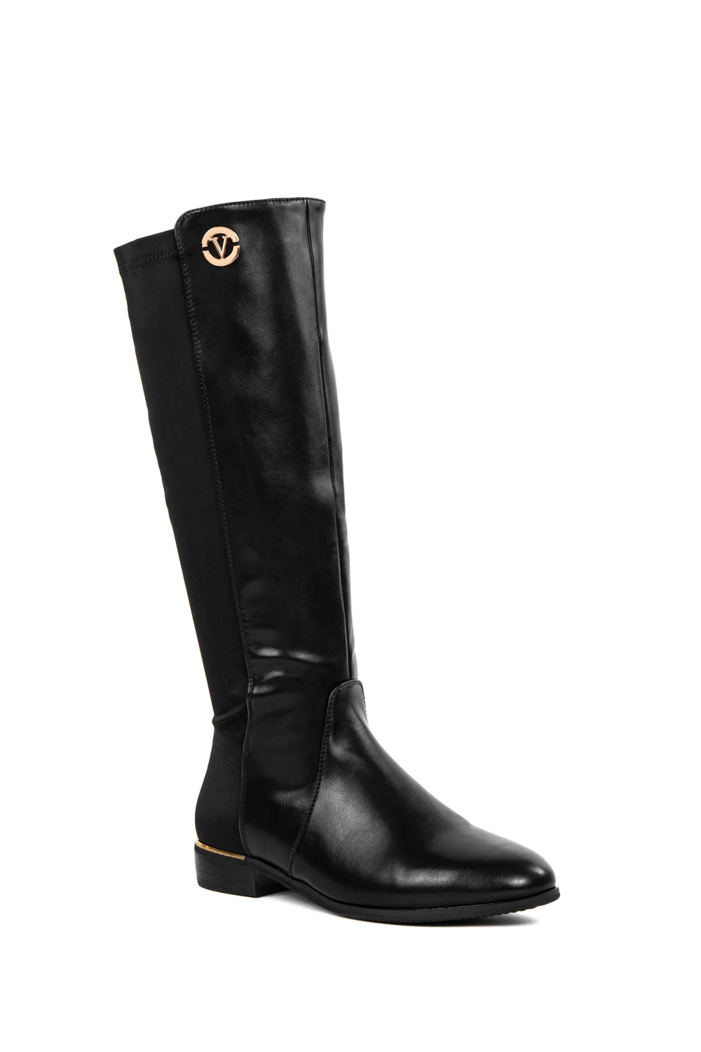 Yesmile Fekete Színű Műbőr Női Magasszárú Csizma Arany Kiegészítőkkel