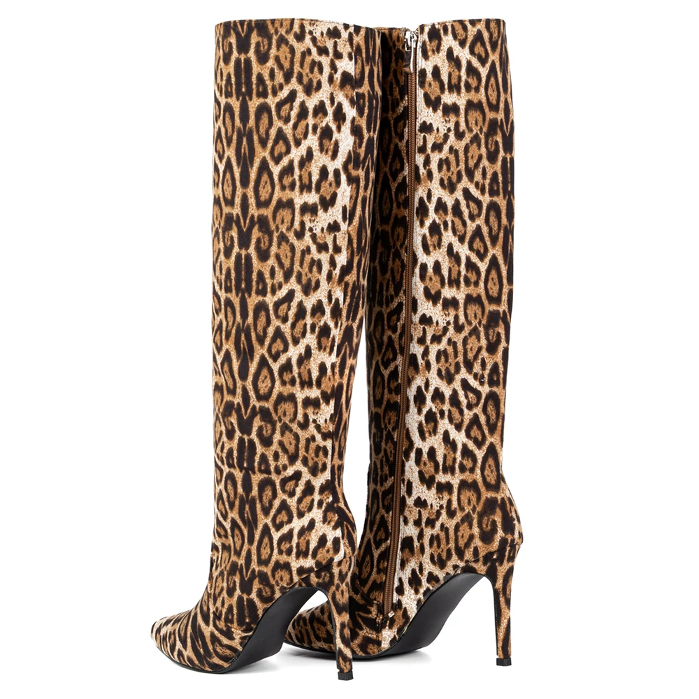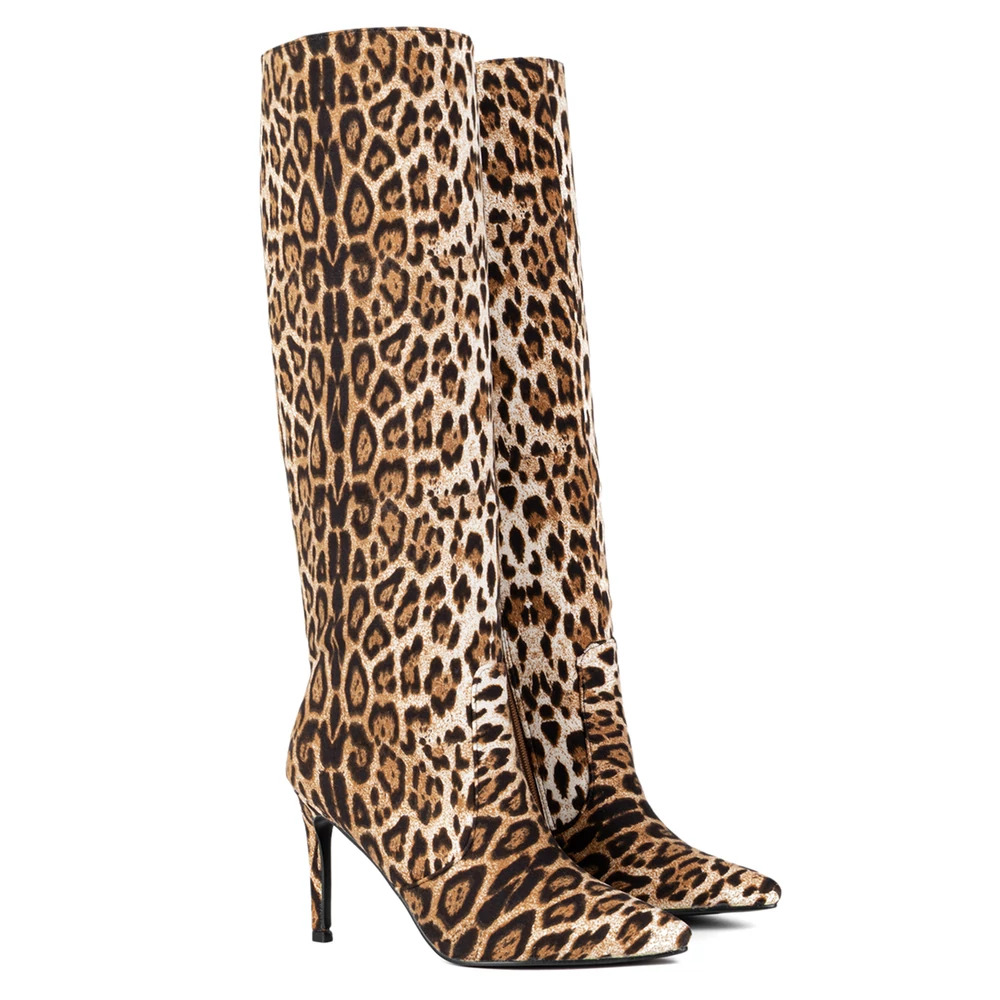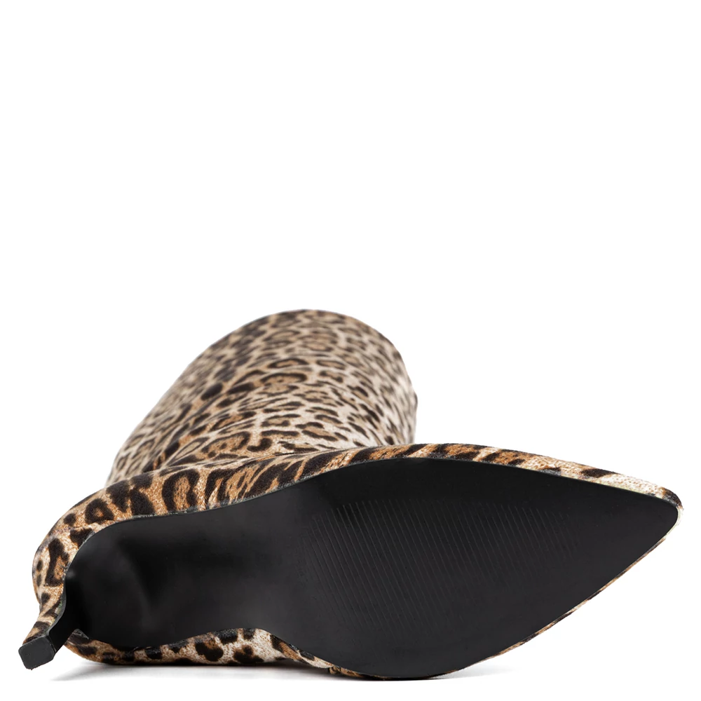 Karakteres, mégis elegáns megjelenést biztosít ez a leopárdmintás női csizma, amely letisztult formavilágával és hegyes orrú kialakításával igazi figyelemfelkeltő darab. A vékony magas sarok optikailag nyújtja a lábakat, miközben stabil tartást ad. Teljes hosszában cipzáros, így könnyen fel- és levehető, belül pedig puha, meleg bélés gondoskodik a kényelemről a hideg napokon is.
