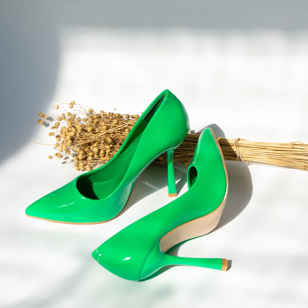 Zöld Lakkozott Alkalmi Cipő Extravagáns Tűsarokkal